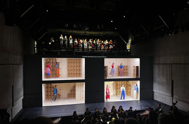 In enger Zusammenarbeit mit Ali Nikrang, Professor für Künstliche Intelligenz und Musikalische Kreation der HMTM, entstehen zusätzlich verschiedene KI – generierte Fassungen von Didos tragischen Schluss-Lamento, die mehrfach im Stück von verschiedenen Protagonist*innen und dem Madrigalchor gesungen werden: Weiblichkeit, Tod und Ästhetik erscheinen so in neuem Licht.